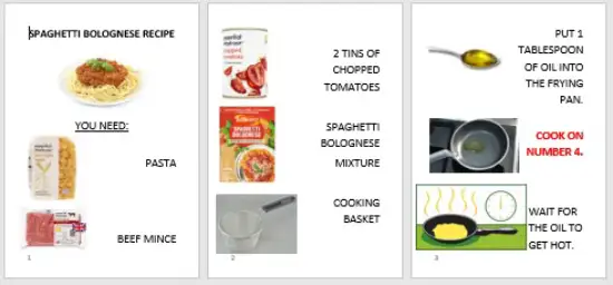 Today I saw a married couple, Kate and William, in order to support them to develop their cooking skills, as they are both underweight and have limited diets. Our work together has involved me doing a cooking assessment which has allowed me to identify areas where they had some difficulties. For example, Kate was having difficulties with lifting heavy pans of water, so I put some simple cooking baskets in to place which allowed her to lift the pasta out of the pan without the water. Kate and William also benefitted from a kettle tipper and an electric can opener, as arthritis made these tasks difficult. The main barrier that I identified was lack of confidence in using the oven and cooker, and in particular a fear that they would hurt themselves. Through regular work on developing their cooking skills around meals they both identified they’d like to be able to make, they began to develop the skills and confidence to cook independently and increase their weight and nutrient intake. We have developed easy read recipes for the chosen meals, and easy read guidelines around using their microwave and timer, and they are now using their microwave independently, and their cooker through the use of these guidelines. Today was the first time I was told I was not needed as they had already made their meal. The words all OT’s want to hear!